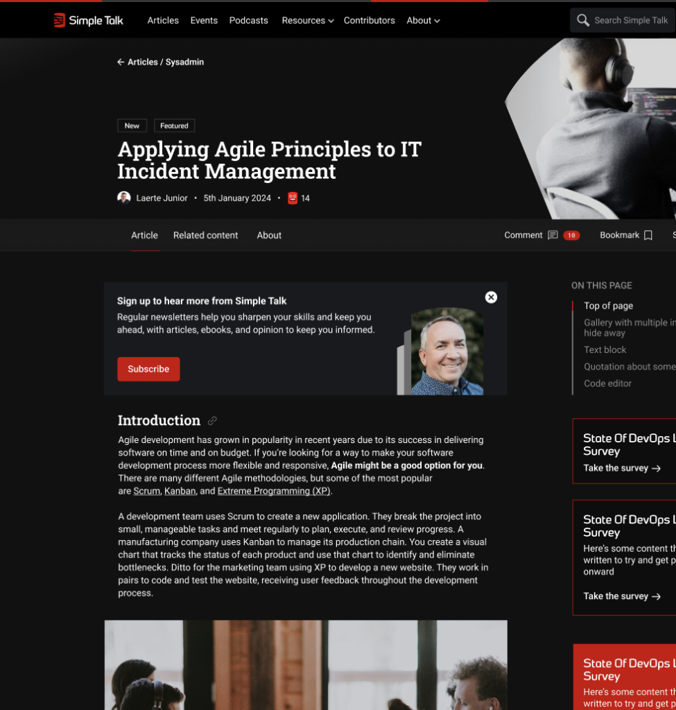 The website needed to be consistent the wider Redgate presence, whilst creating a space that reflected its editorial independence. We needed to ensure WCAG 2.1 compliance, with an overall goal to gather new sign-ups and encourage traffic to filter through to the wider Redgate website.
