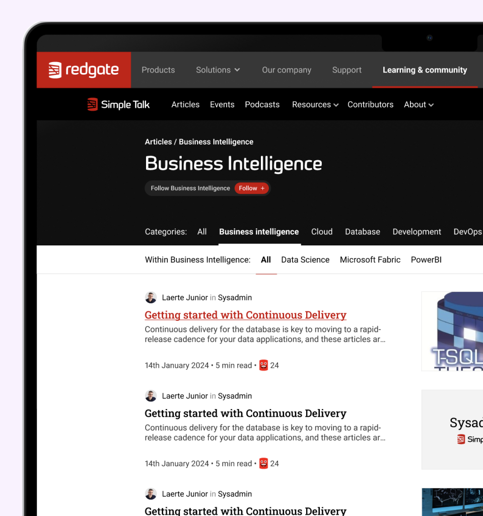 As Redgate entrusted our team to make the most of an investment into the Simple Talk platform, I helped make decisions on new features that Simple Talk would promote, and lead their design. This included Podcast assets, a suite of Event branding, and more.